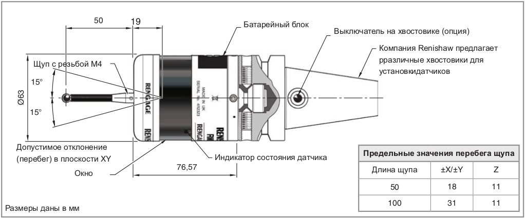 | Основное назначение | Измерение размеров деталей и настройка на технологические операции на многоцелевых станках и обрабатывающих центрах, включая портальные. | ||